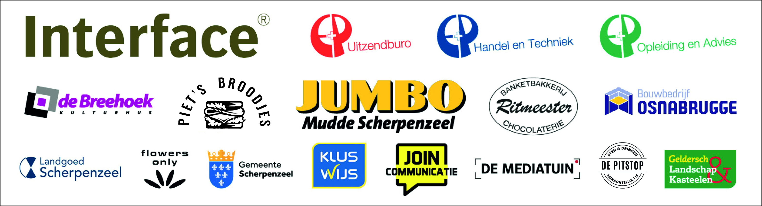 De Avondvierdaagse kan alleen bestaan door onze trouwe sponsoren. Dus veel dank aan de hoofdsponsoren Interface en E&P Uitzendbureau die al jarenlang met hun financiële bijdrage de vereniging in stand houden. En de sponsoren Jumbo Mudde, De Pitstop, Banketbakkerij Ritmeester en De Breehoek voor hun versnaperingen onderweg.